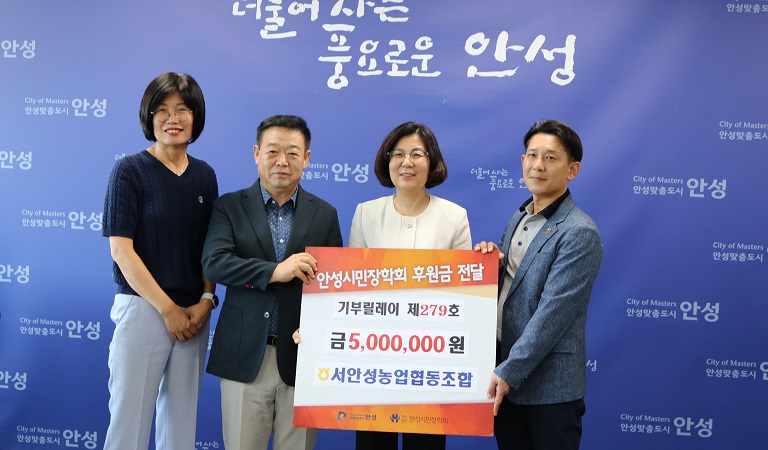19일, 서안성농협(조합장 윤국한)에서 기부금 5백만원을 기탁해주셨습니다.