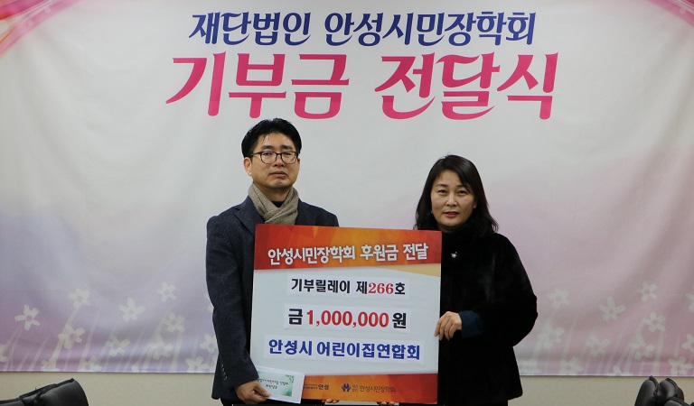 10일, 안성시어린이집연합회에서 기부금 1백만원을 기탁해주셨습니다.