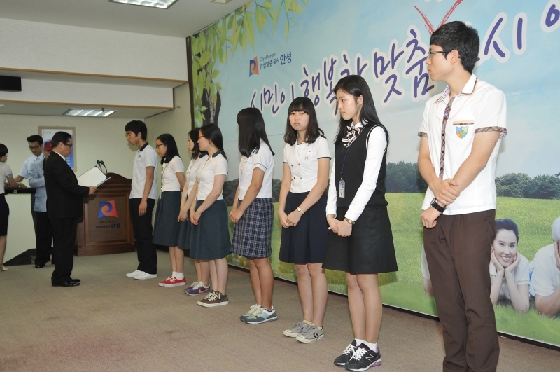 ▲고등학생 : 김진욱(안성고)ㆍ조은비(안성여고)ㆍ박소진(일죽고)ㆍ안법고(이보람)ㆍ김주영(가온고)ㆍ강승묵(경기창조고)ㆍ안도영(안성여고)ㆍ이승영(안성여고)