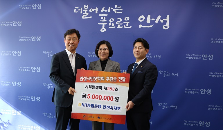 12월 1일, NH농협은행 안성시지부(지부장 김형수)에서 기부금 5백만원을 기탁해주셨습니다.
